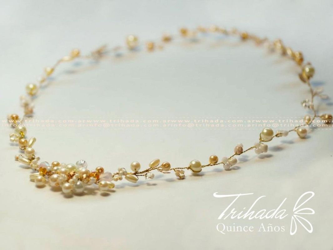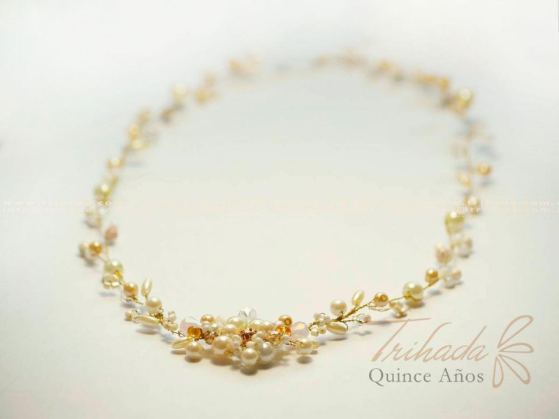 Tiara entera de perlas y critales. se puede realizar en todas las tonalidades