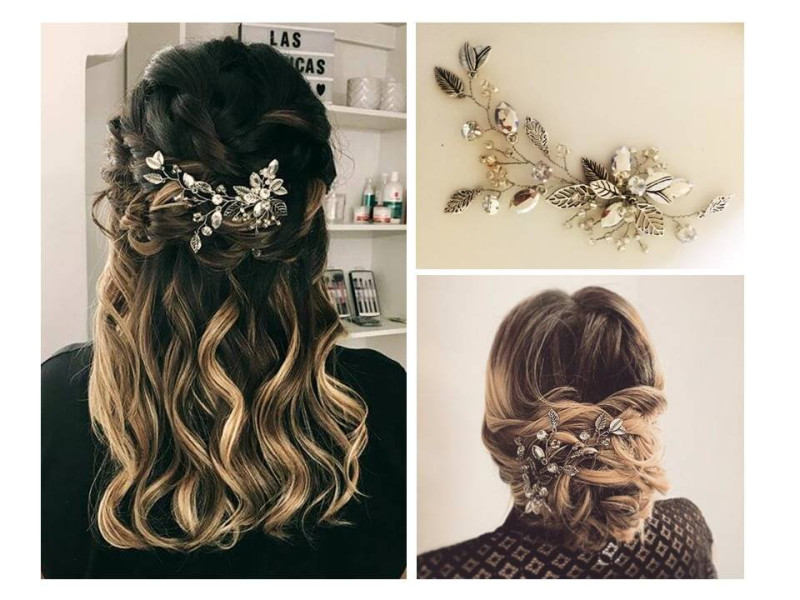 Tocado irregular en tonos plata cpn hojas metalicas, disponible en plateado o dorado