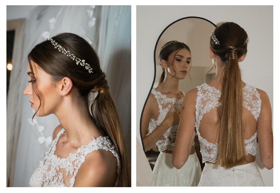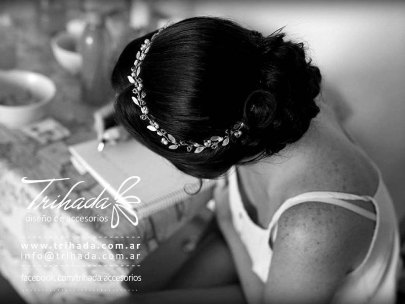 Tiara realizada con hojas nacaradas en combinación con materiales y tonos a elección.