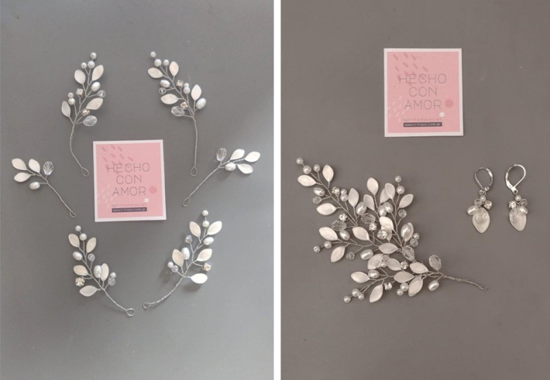 los podes usar separdos a lo largo de una trenza, combinarlo armando dos piezas medianas (con tres pins cada una] o un tocado irregular mediano uniendo todo, como te mostramos en la imagen, para usar en un peinado lateral.