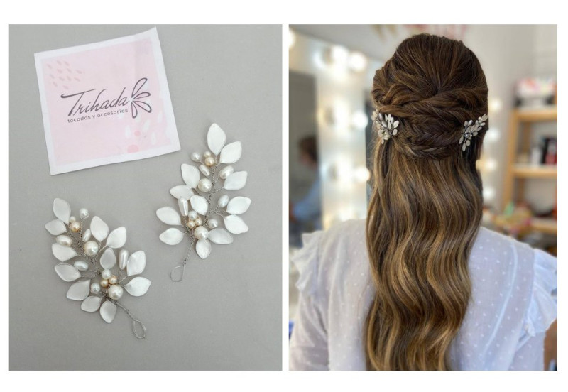 Par de pins de hojitas combinados con perlas.