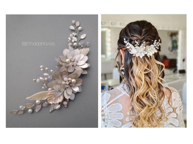 Bouquet de flores con detalles de porcelana y mix de cristal strass y perlas