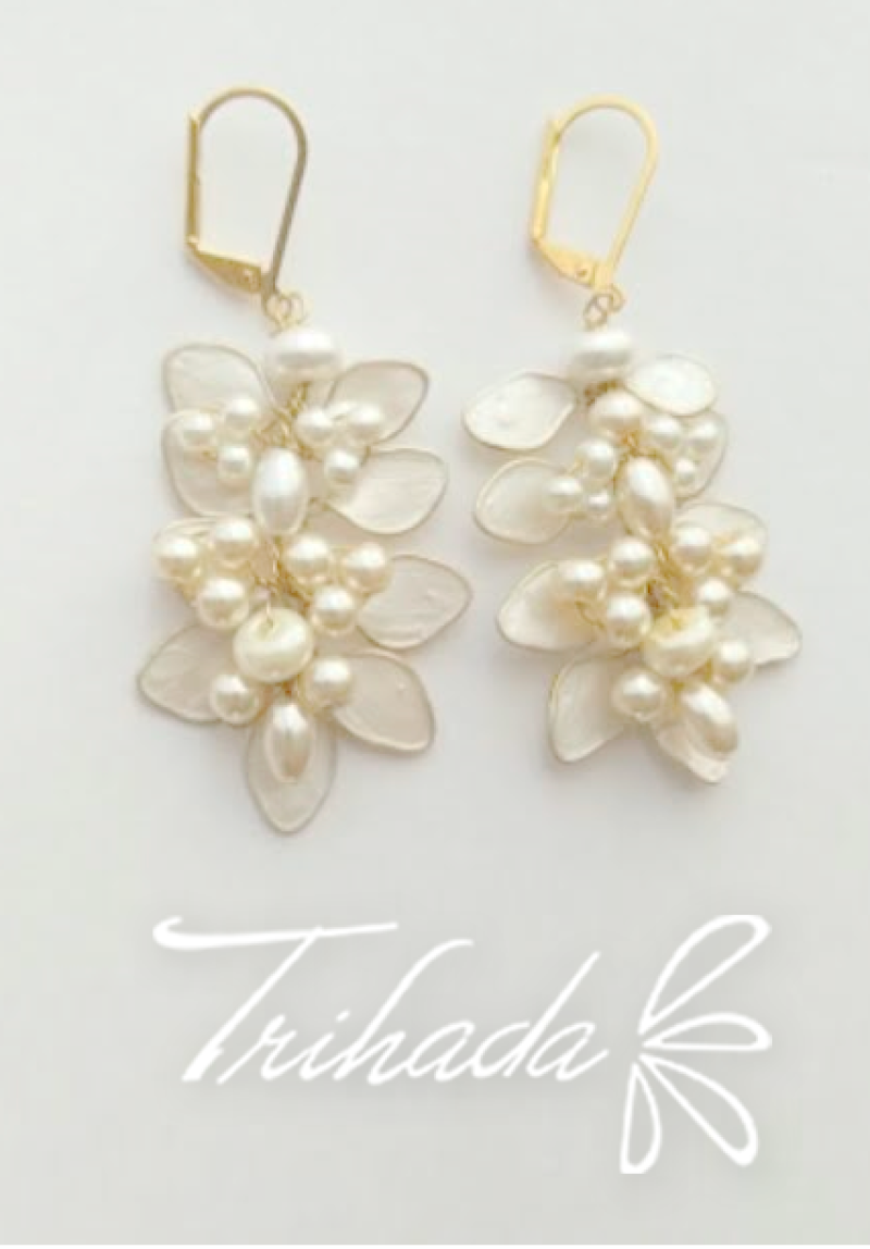 Aros medianos con hojitas de nacar y perlas en distintos tonos.